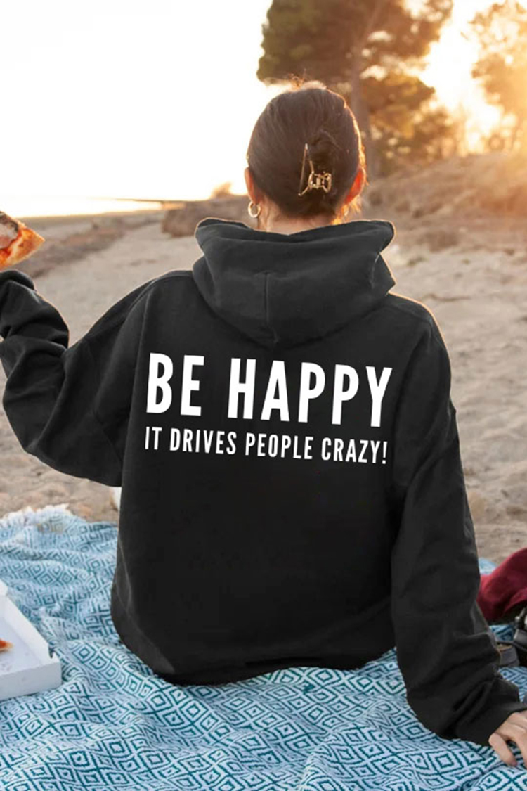 Causal Be Happy It Drives People Crazy Print Hoodie