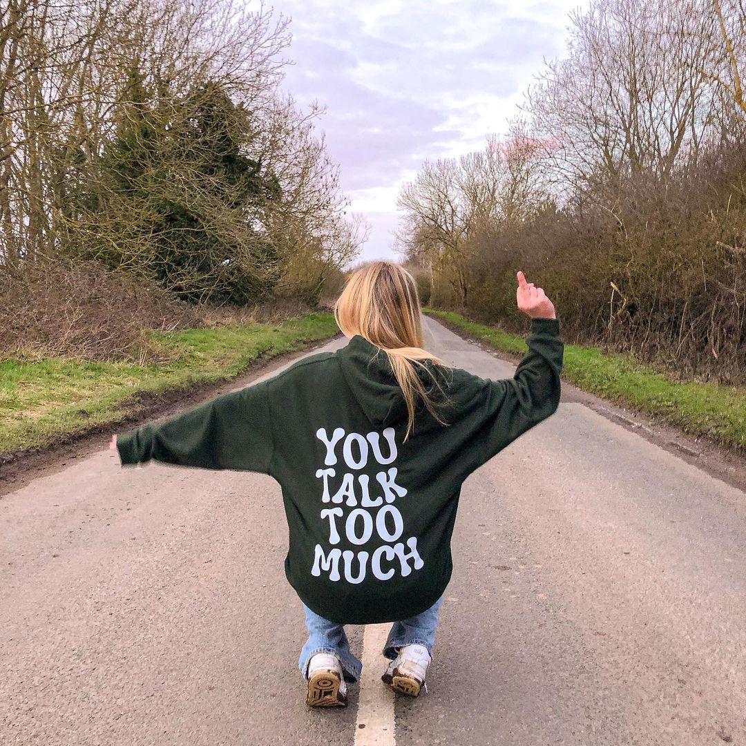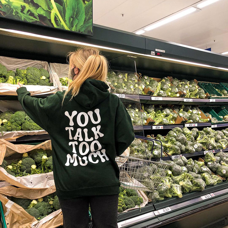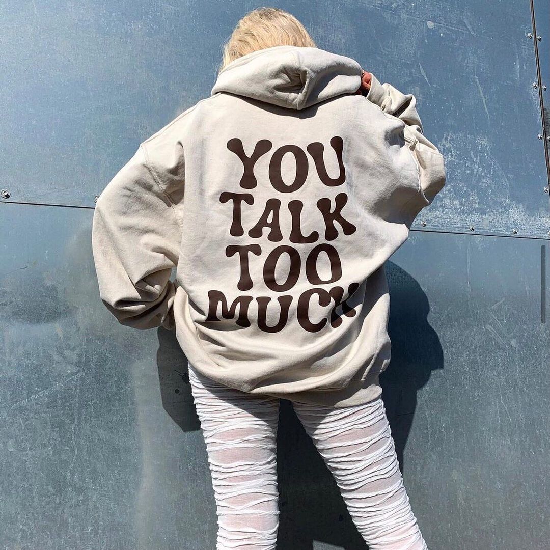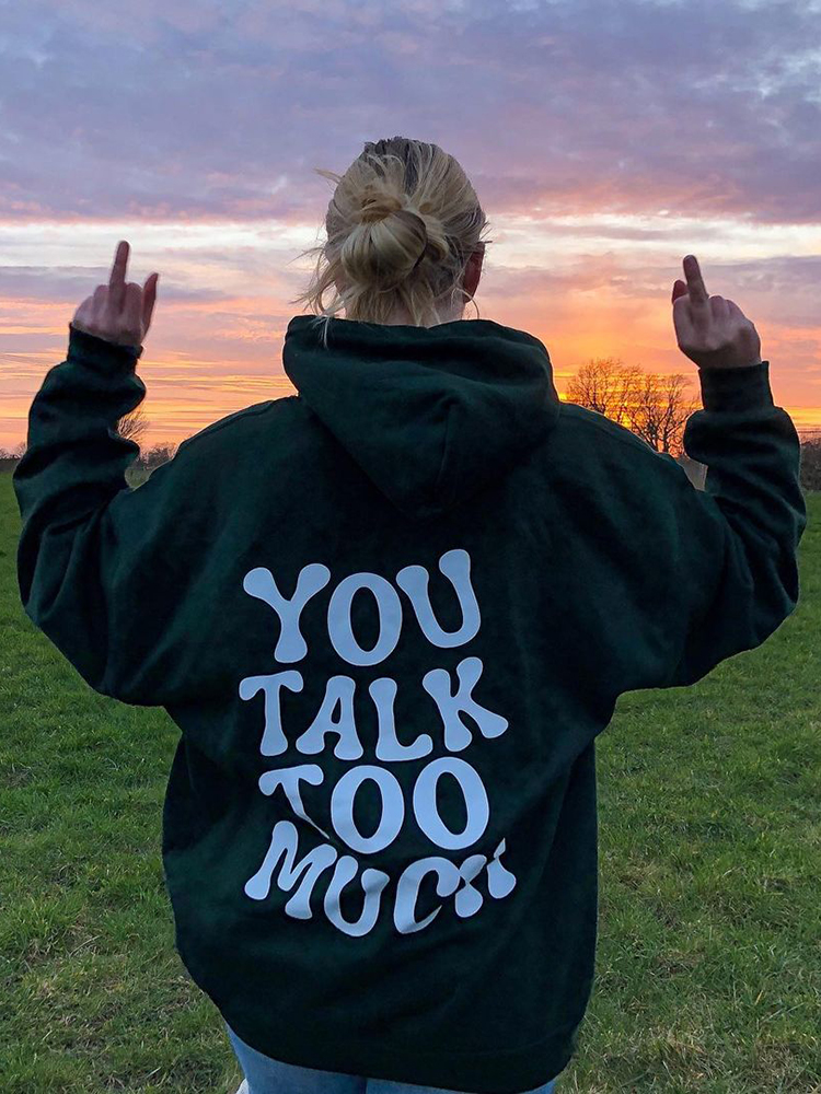 You Talk Too Much Print Hoodie