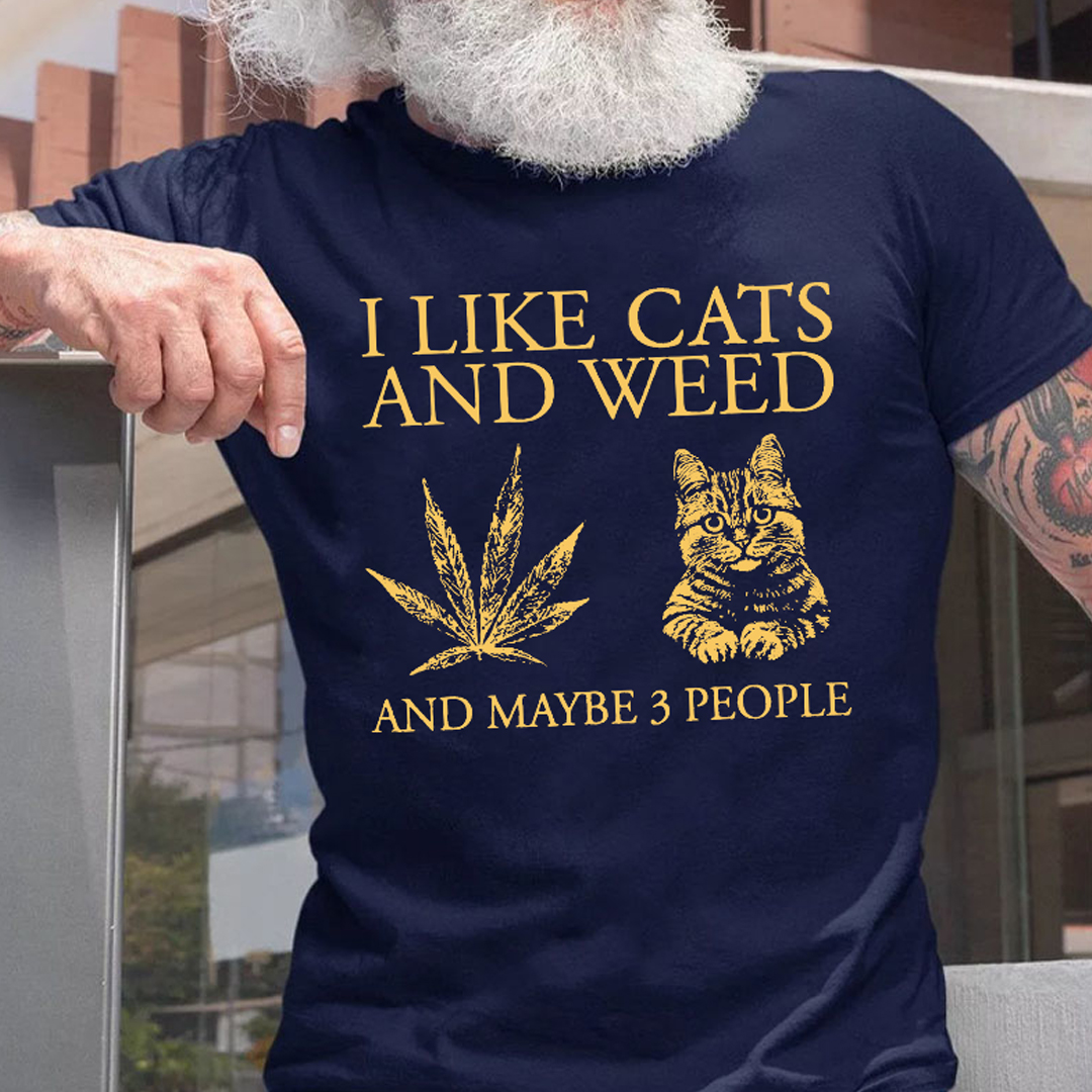 • I Like Cats And Maybe 3 People Men's Short Sleeve Antibacterial cotton Printed T-shirt