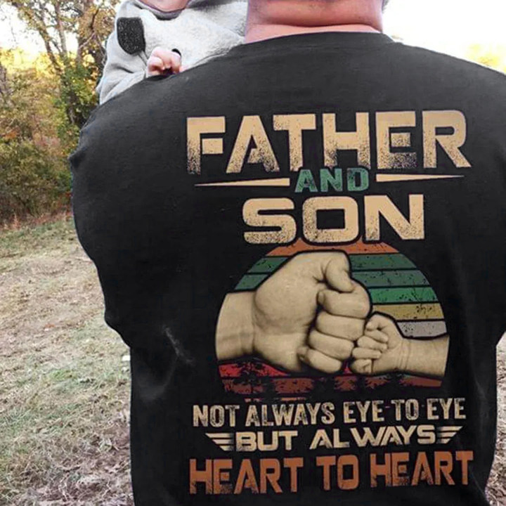 Father And Son Not Always Eye To Eye But Always Heart To Heart Men's Short Sleeve Antibacterial cotton Printed T-shirt