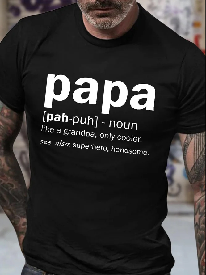 Papa Like A Grandpa Only Cooler See Also Superhero Handsome Men's Short Sleeve Antibacterial cotton Printed T-shirt