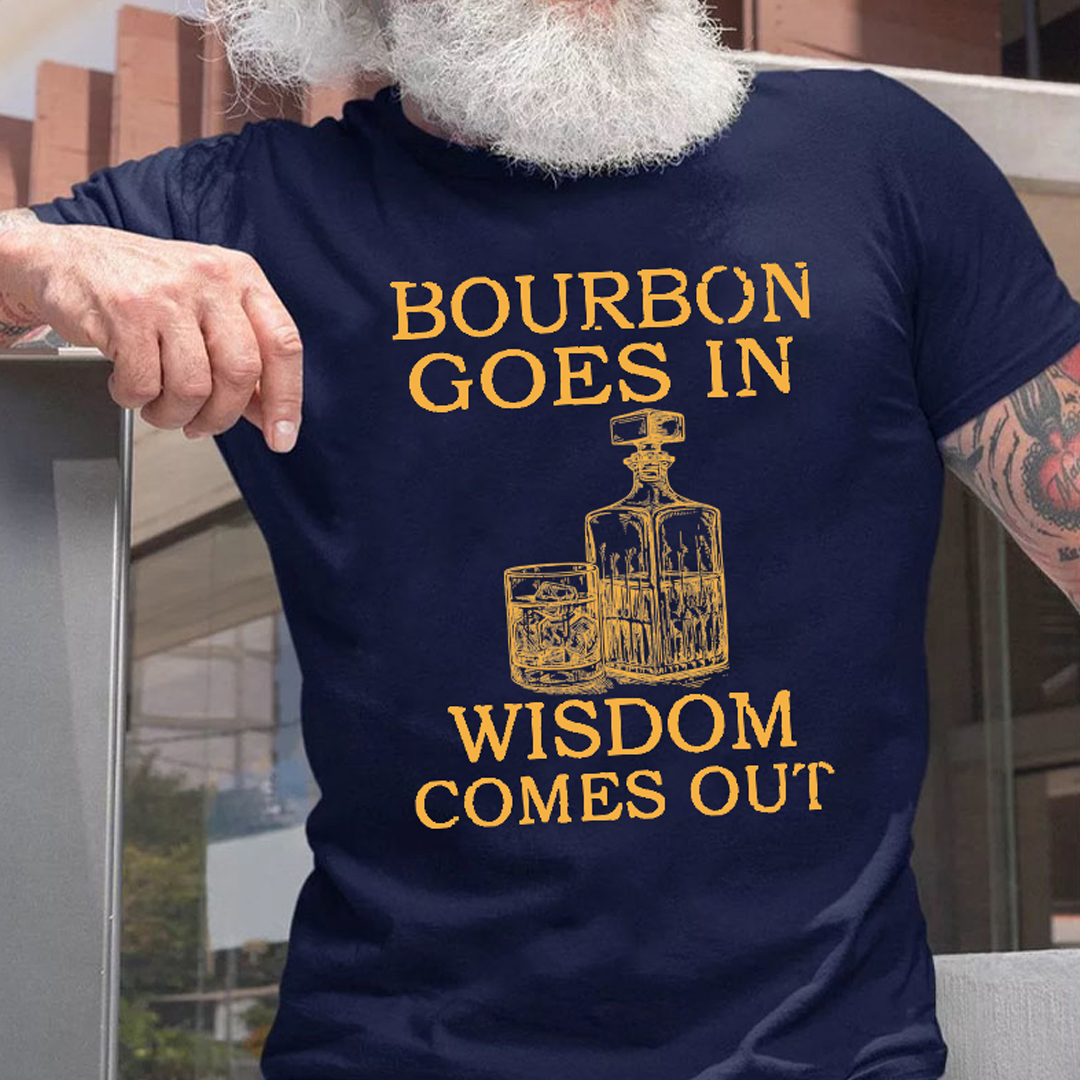 • Bourbon Goes In Wisdom Comes Out Men's Short Sleeve Antibacterial cotton Printed T-shirt
