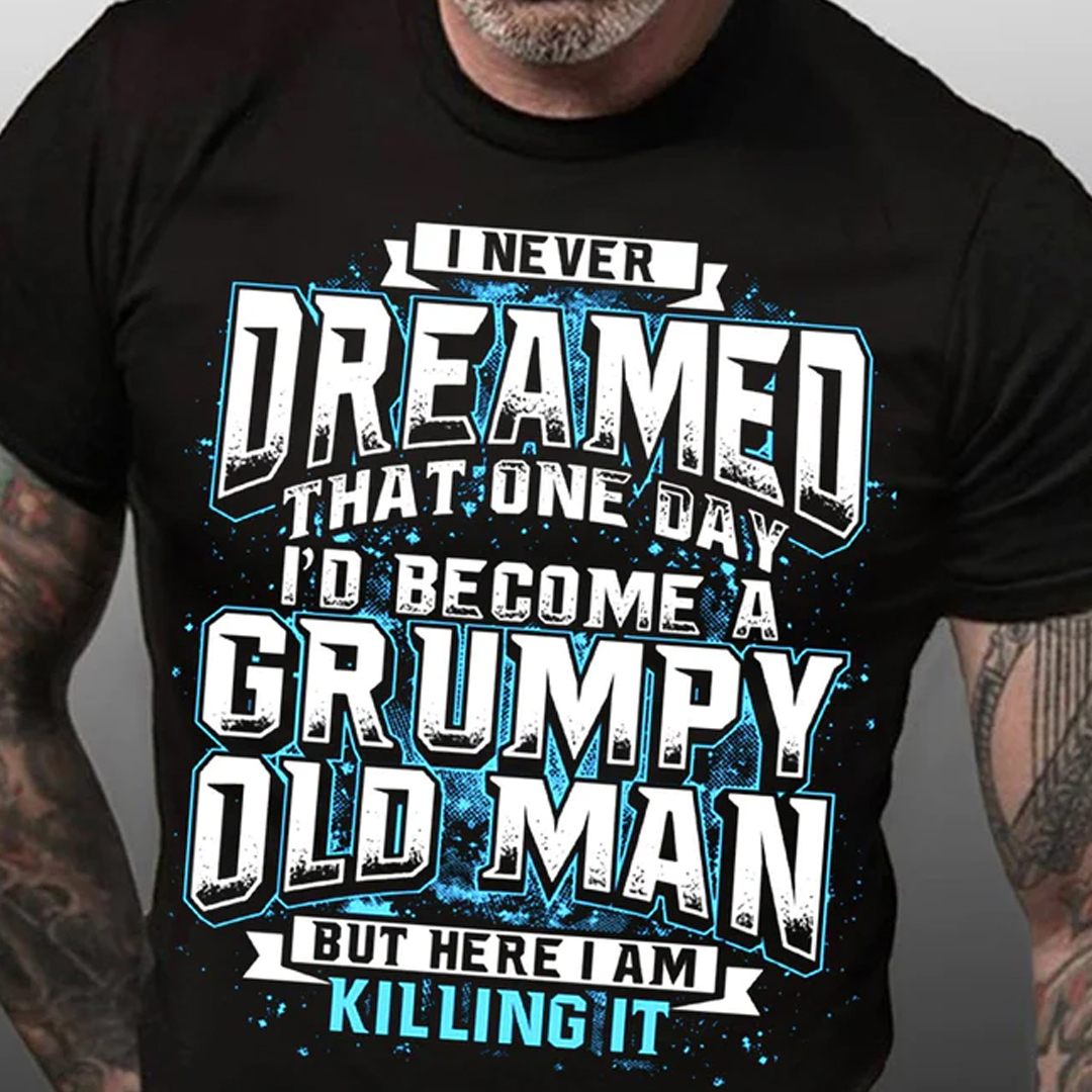 I NEVER DREAM BECOME GRUMPY OLD Men's Short Sleeve Antibacterial cotton Printed T-shirt